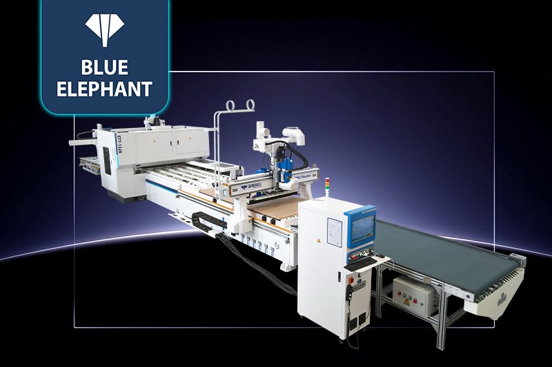 數(shù)控鉆切一體機是藍象數(shù)控新研發(fā)的一款集開料、貼標、打孔,配合封邊機封邊的全新板式家具生產(chǎn)線設(shè)備,這套設(shè)備不僅優(yōu)化了傳統(tǒng)的生產(chǎn)流程,還解決了大型無人生產(chǎn)車間投入高,占地面積大等缺陷,讓中小型板式家具廠家擁有更具有性價比的生產(chǎn)線。